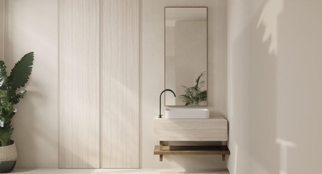 Estas cualidades convierten a Duo en una opción perfecta para mobiliario de cocina, baño, armarios, revestimientos verticales u horizontales, y puertas técnicas.