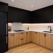 - Si nos decidimos a combinar con maderas claras como el haya, el arce o el roble, se consigue un resultado más uniforme. Mientas que si optamos por maderas oscuras o rojizas como el zapelli o el nogal el contraste puede resultar excesivo. Esta es más una cuestión de gustos.